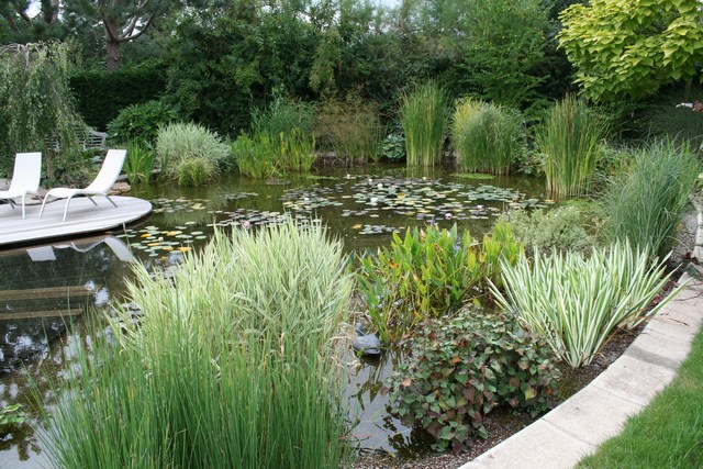 Design notes: Our client had a completely new garden to enhance the house and he decided to add a swimming pond. This was at the rear of the garden and in close proximity to an existing duck pond.