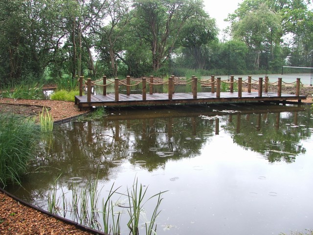 Special features include the underwater steps leading in an out of the pond. They are made from recycled timber and plastic in the form of old oak beams. A small deck area, which in the past would have been used for fishing, acts as a diving platform into the deep water. This has been constructed from natural sawn pressure treated softwood. At the far end of the moat, a bog garden has been created for educational purposes as, until now, there has not been a moisture loving plant area at Capel.