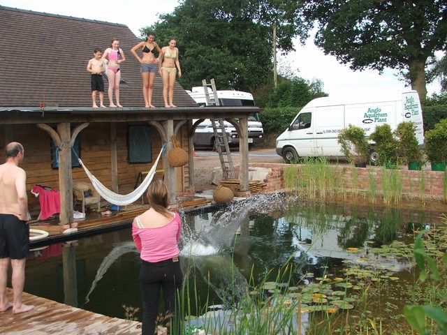 Design notes: Our client was a garden designer and when she came to us, she already had some provisional plans. After discussions, some amendments were made and a final plan was agreed. She already had contractors on site who carried out the excavation work before we moved in to line the pond and carry out the filtration and planting processes. There is a rather nice Breeze House, Sauna and hot tub to enhance their enjoyment.